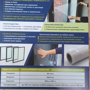 Пленка БЕСКЛЕЕВАЯ внутренняя 80мкм шир-800мм 1рул-100м