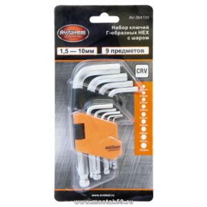 Набор ключей Г-образных HEX с шаром 1,5-10мм “AV Steel” 9 предм